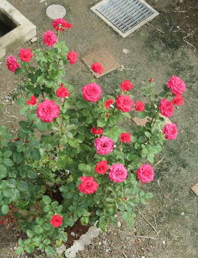実は、このカーディナルがわが家の裏庭の中心的なバラになっています。ちょうど裏庭の中央付近に位置するのと、その鮮明な赤い花の色が目立つので、裏庭に出るとまっさきに目につきます。