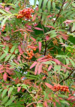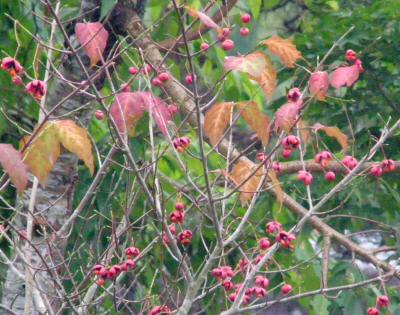 ○ 野球場前の土手の、紅葉し始めた桜の葉