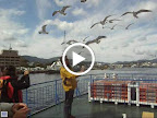 大島へ向かう遊覧船上、カモメと戯れる 亀山のロープウェー 亀山展望台から見下ろす南三陸海岸 亀山展望台から見上げる室根山 海水浴場