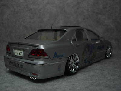 初めての痛VIP車です(笑) ついに"やっちゃった感"が漂ってますがスルーで(笑) まあベースはパルファムのファントム・ガムキット。 LED投入とダクト開口、バネ抜きローダウン以外は基本キット通りです。 LED入れるとやっぱプロジェクターっぽくでいいですねw グラフィックは車名であるクラウン(王冠)にちなみ、王族であるフィーナ・ファム・アーシュライトに。 ただ今回は透明なシール使ったんではっきりとは見えにくいのが残念ですが、痛車であると同時にVIP仕様でもあるからこれでいいかと納得しときますw にしても今回初めてボンネットにでかいの貼ったんですが形状的に貼りにくかったです。(つかぶっちゃけちょい失敗してるし) |