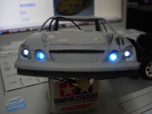 12月8日 前後ライト部開口しました。 前のライトは前作の16アリから流用したLED付けます。新しく作るのもメンドイし、もったいないし。 |