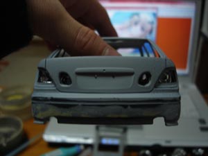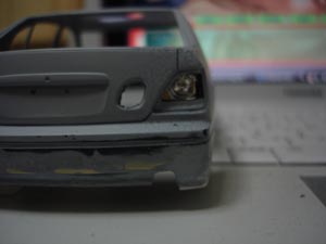サフ2回目の全体図。 Fバンはフォグ周りをしっかり作り込み、支柱も削り込んでフォグを奥まらせるようにしました。 ボンネットはまだちょい粗あるのでパテ盛り必須かなあ。 |