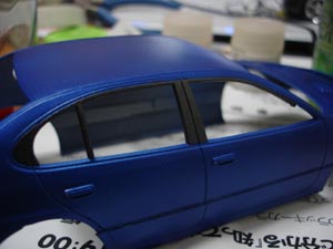 クリア塗る前にピラー塗装。 塗装指示のブラックとは違ってガンメタ塗装。 いじってる感出すためにカーボン意識でw |