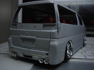 こちらにはR35GT-Rのベースモデルマフラーを両出しにして、ディフューザーっぽく。 |