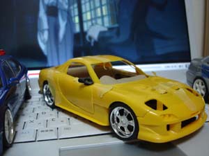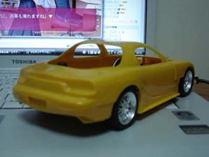 ボディ周り。 結構いい感じの雰囲気かと。 ただ実車もそうだから仕方ないけどフェンダーミラーはないよなあ。 今度実家帰ったときVERTEX作った時のFD用ミラー持ってくるか。 |