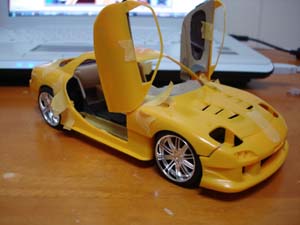 11月15日 前回からクロームイエロー×1、クリア×1吹きました。 クリアはもう1回吹いて研ぎ出しとも思ったけどテンション低下やボディ形状が複雑(ボンネットとか)でメンドくなりクリア1回で終了(*´∇`*;) |