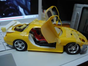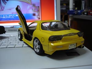 ガルを開けたらこんな感じ。 エアロミラーもちゃんとドアにつけれるのはアオシマFDのいいところかな。 |