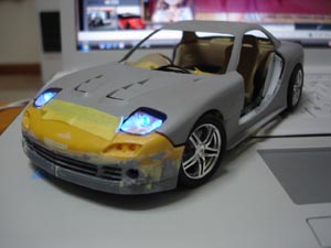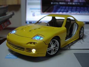 ライト点灯。 やっぱ明るいな(*´∇`*;) …バンパーの横バーシルバーで塗ろうかなw つか後デカール類だけで完成だなあ。 |