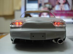 今回初めてテールライトにも。 まあ後期テール(雨宮のダックテールだけど)だから丸目6灯仕様だしちょうど3mmぐらいなので。 ちなみにリアには抵抗入ってるので少し暗め。 |