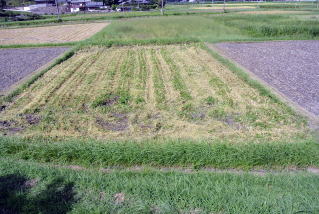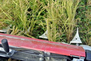 通常は、このような草のない田圃で稲刈りをし問題なく終えるのですが、
