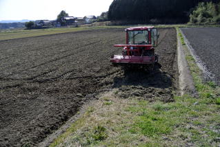 新しいトラクタで田圃の耕作を行った。1日に1町のペースでの耕作が可能であった。
