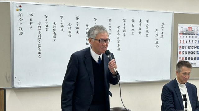 総会は冒頭田中顧問にご臨席を賜りご挨拶をいただいた後、11月22日に開催された理事会の起案事項に対する審議が行われ次年度に向けての方向性が決まりました。