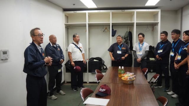 | さあ、始まります! | 朝礼/谷間理事長のご挨拶 | 審判ミーティング |