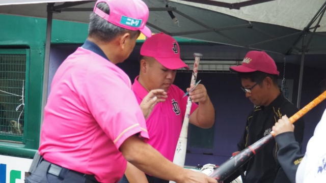 | NSKサインボールシャワー | 用具点検しま〜す! | オーダー変更ないですね・・・ |