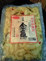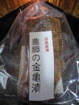 旨味甘味たっぷり長寿金亀80純米酒で漬け込まれたコリコリ食感さっぱり甘味の美味しい大根の漬物。