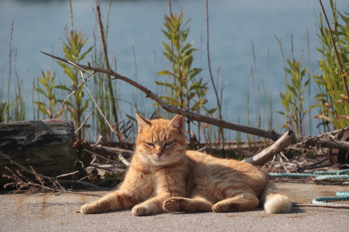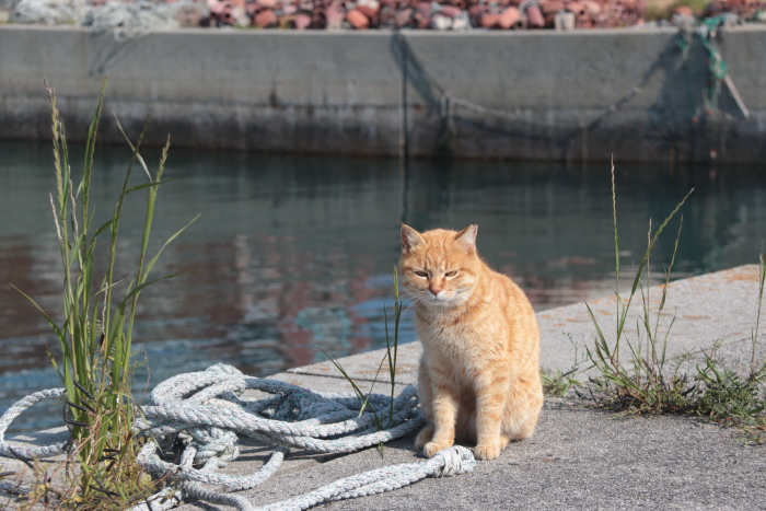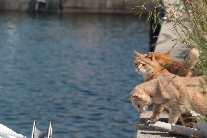 たぶん、後で漁師の方が猫の足跡見つけて「またここで遊んだな」と苦笑いするんでしょうね。