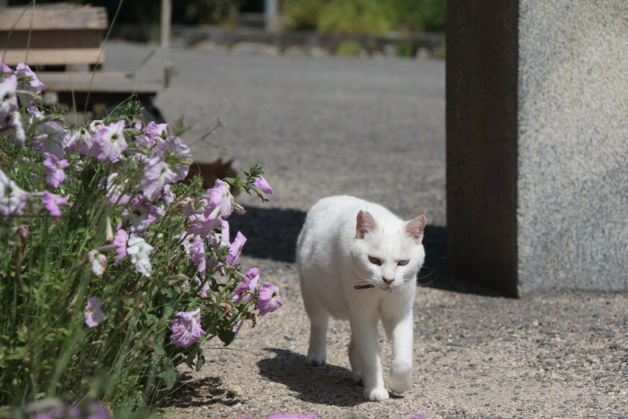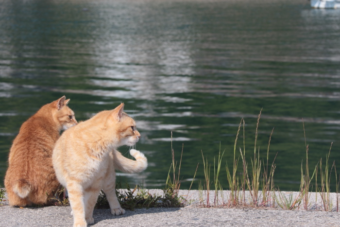前にも書きましたが、朝のこの時間、港で日向ぼっこをしている子がいることがあるんですよね。もちろんいつもというわけではなく、全くの彼らの気分次第ではあるんですが。当然朝ごはんの時間に学校にいないわけだから朝メシ抜きになるのか…というとそういうわけではなく帰ってから家の前でニャーニャー鳴いて催促に行くそうです。(^^;
