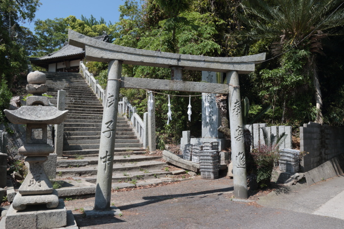 睦月集落のはずれにある當田八幡神社。平安時代に創建された歴史の古い神社です。