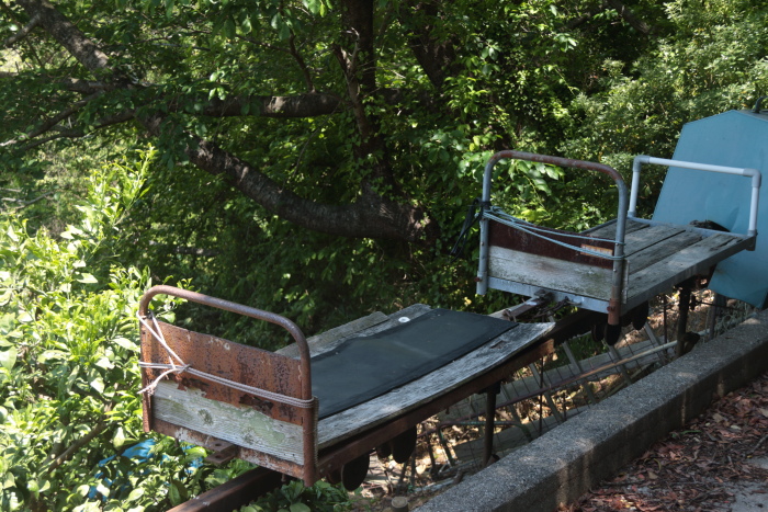 荷物用モノレールです。これ、収穫時にみかんの実を満載した箱を道まで上げるためのもの。今の時期はお休み。