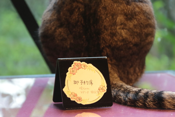 人間の予約席ではなくて、猫(坊っちゃんとマド)の予約席。だもんで、この席は人間は座れません。(^^;