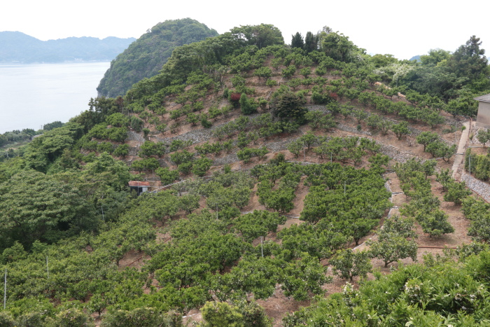 斜面に作られたみかん畑。怒和島はレモンの栽培も盛んです。