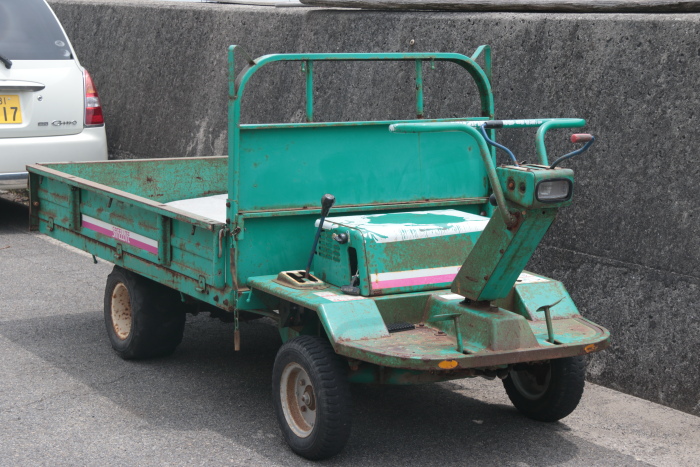 「バタバタ」と呼ばれる車両。みかん収穫時や農機具の運搬に使用するものです。忽那諸島ではよく見かけます。