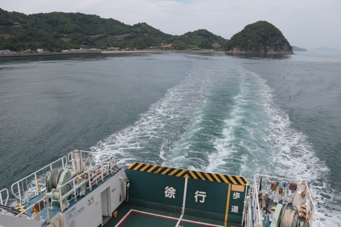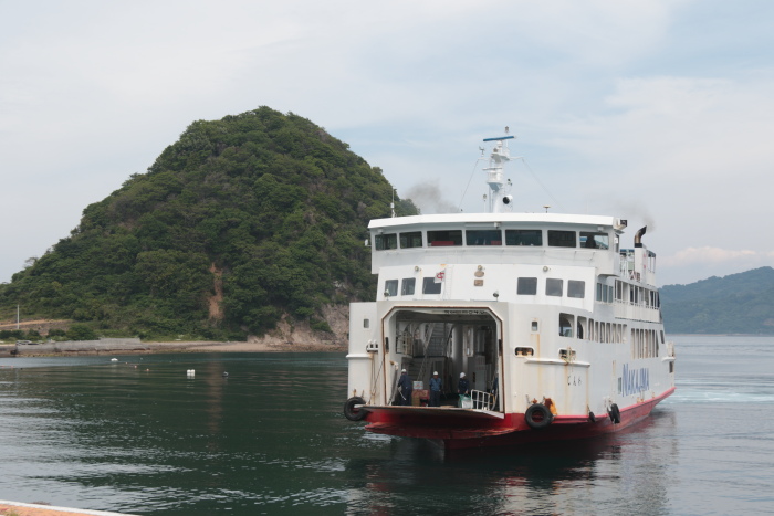 朝の高速船で来なければ、11:22着のこのフェリーまで松山から怒和までの船はありません。