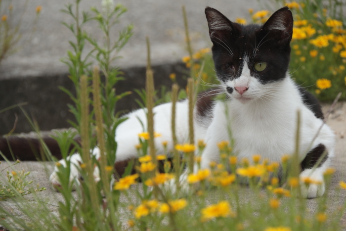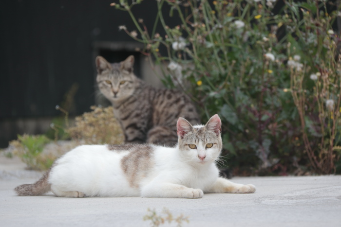 猫が何匹も集まっているというわけではないけれど、10mあるいは15mおきに猫がさりげなく顔を出す。それがなんだか、はるか昔に自分が暮らした下町の路地を歩いているような錯覚を抱かせて。私がこの島に特別な思いを寄せる要因のひとつにはそれもあるのかもしれないですね。