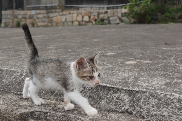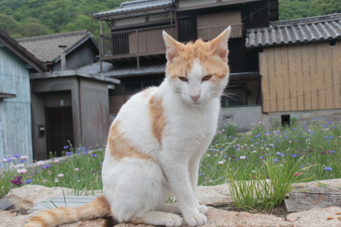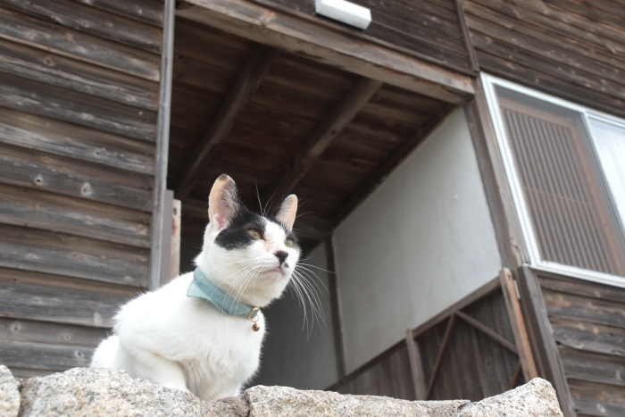 港から本浦の集落に入っていくと、あちらからもこちらからも猫たちが。