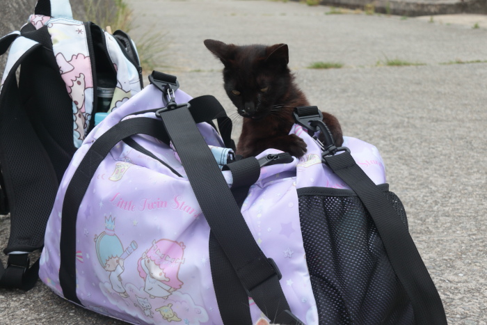 シルバーカーの上に乗ってるのは猫カリカリ。行き帰りに途中にいる猫たちにカリカリをあげていきます。