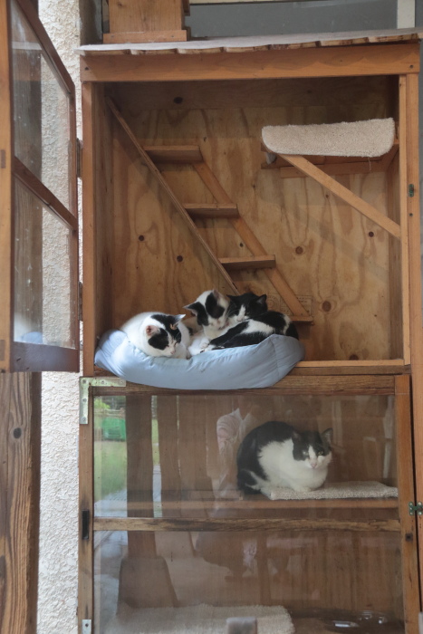 今朝はちょっと肌寒かったせいか、ここの子たちもマンション???で丸くなってました。(^^;