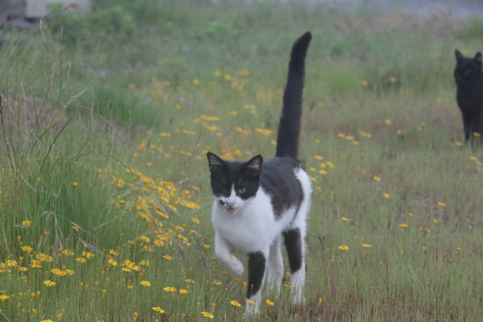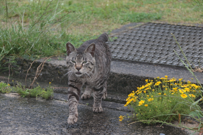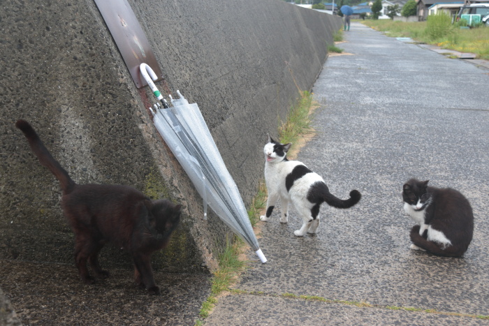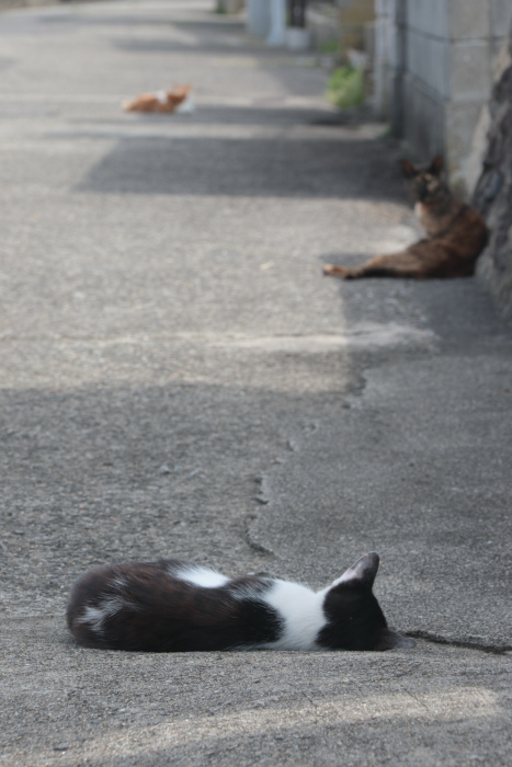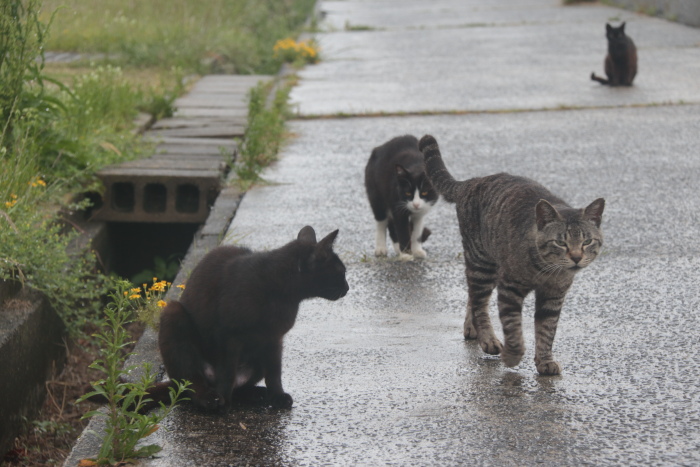 まだ地面が濡れているのですが、猫たちは意に介していないようで。さすが島猫。たくましい。