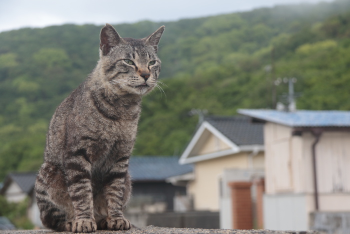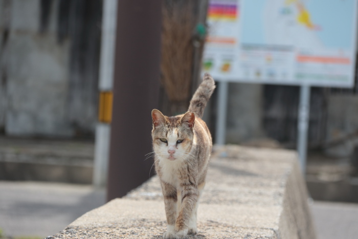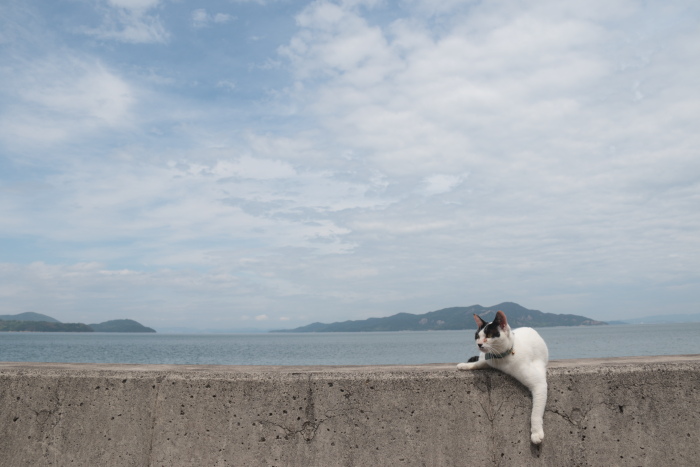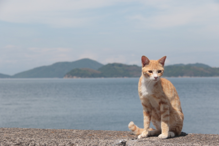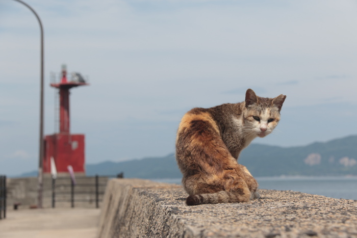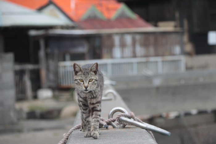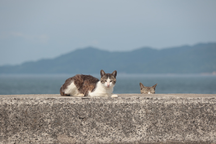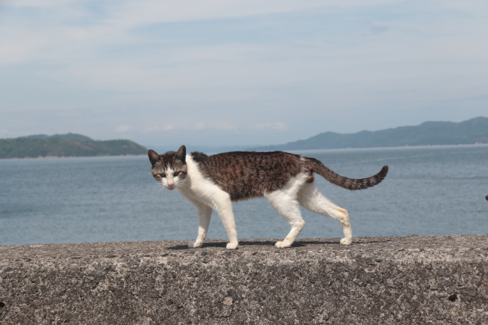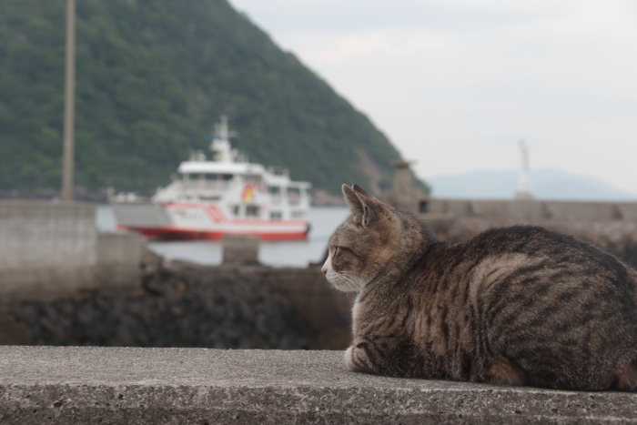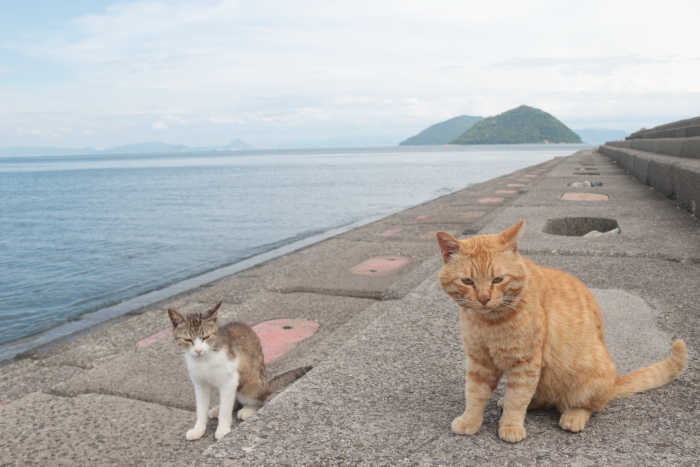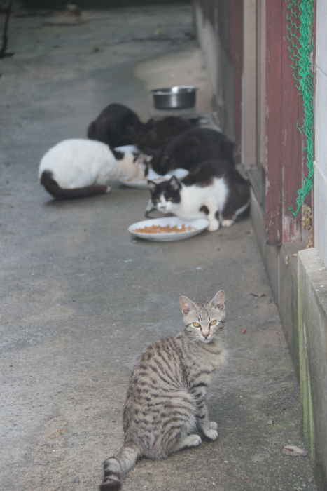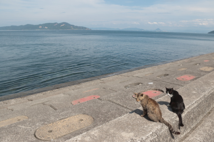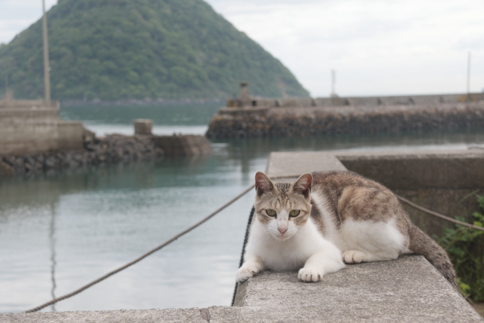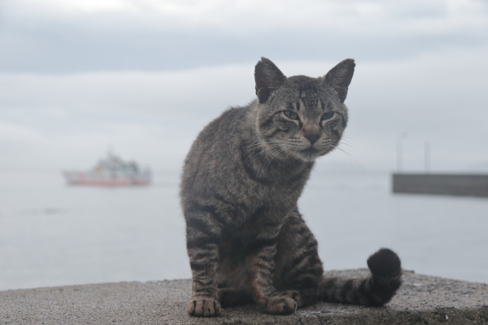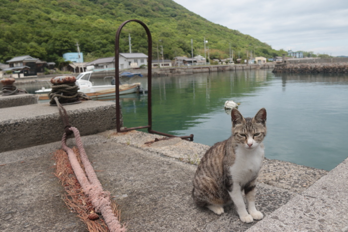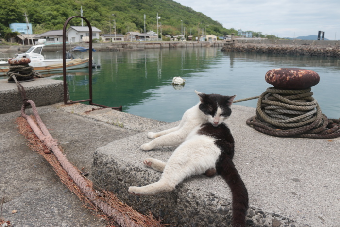 本浦の港に戻ると、猫たちが人恋し気に…。