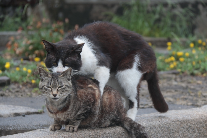 まだ恋の季節は続いています。今交尾だと仔猫が生まれるのは梅雨明けくらいかな。暑い盛りになるかも。