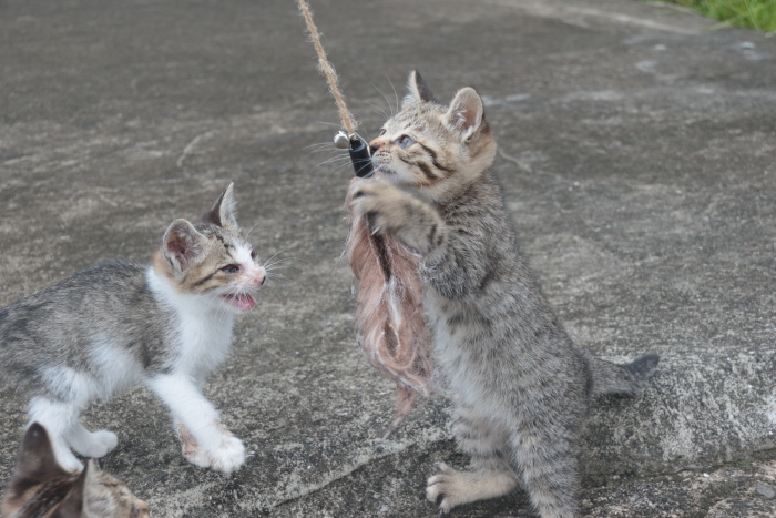 「おね~さん」に遊んでもらえなかったみたいなので、私がまたジャラシで遊んであげました。