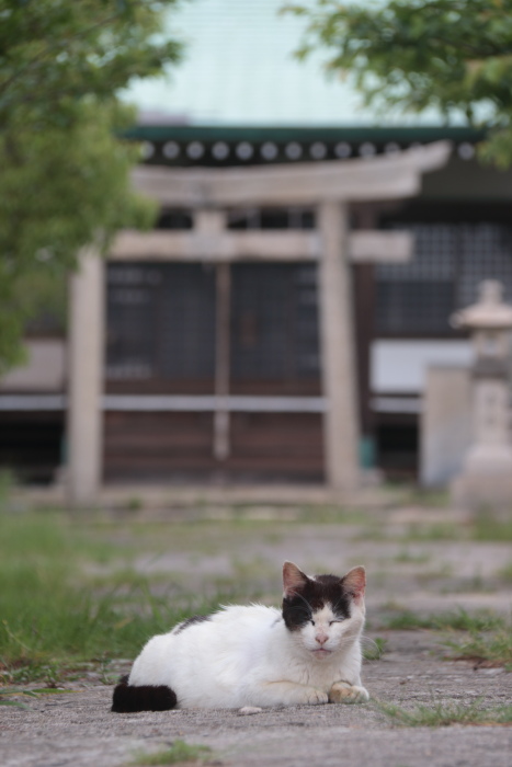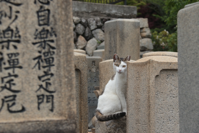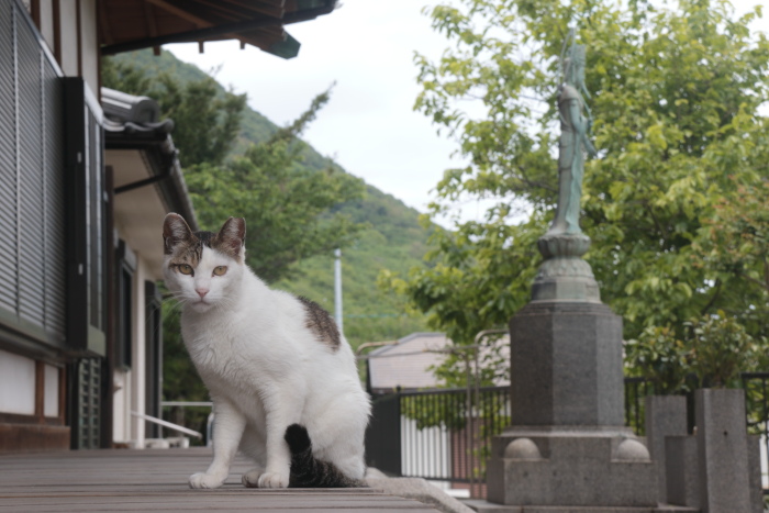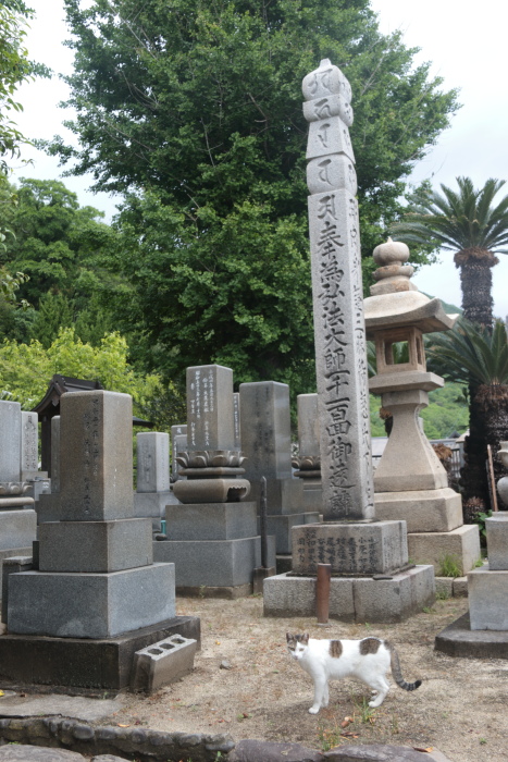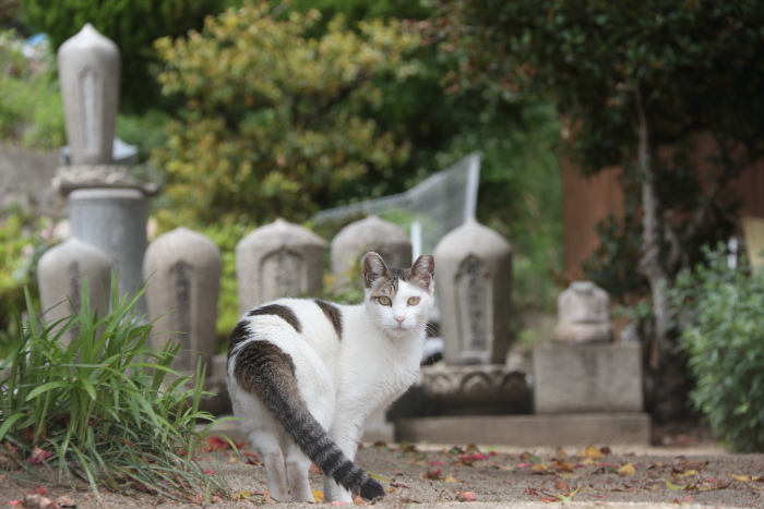 この墓地を縄張りにしているのはこの子だけ。この子、この上にあるお寺の飼い猫さんです。左耳が桜カットされているのがわかると思います。佐柳島では基本、避妊去勢はしていないのですが、飼い猫は別。つまり佐柳島で耳カットされている子を見たらその猫は特定の家の飼い猫と思って間違いないです。