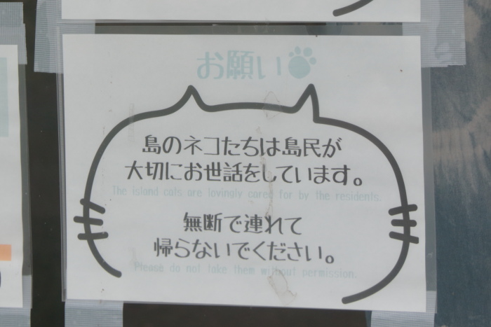 というのも最近、島の人に無断で猫を連れ帰ってしまう人がいるんだそうです。特に仔猫が生まれるこの時期は要注意で。