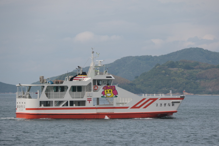 この港には多度津からの船は一日2便しか来ません。朝8時前と夕方15時前。多度津から本浦までは4往復あるのですが、長崎まで来るのはそのうちの半分。朝の便はまず長崎に寄港してそれから本浦へ。夕方の便はまず本浦に寄港してから長崎に入り、再度本浦に寄港して多度津に戻ります。港そのものの規模は本浦と変わらないのですが、ここ長崎は港口が狭く南に開いている形のため西風もしくは東風が強い時はフェリーが左右の岸壁に船体を接触する危険があるため入出港が難しくなります(喫水もいくらか浅いらしい)。このため強風の日は本浦には入れても長崎には入れないということが時々あります。そういう時、長崎の人が船に乗ろうとする場合は本浦まで車で移動するということになりますね。もちろんそういう場合は事前にたどつ汽船から港に連絡が入ります。
