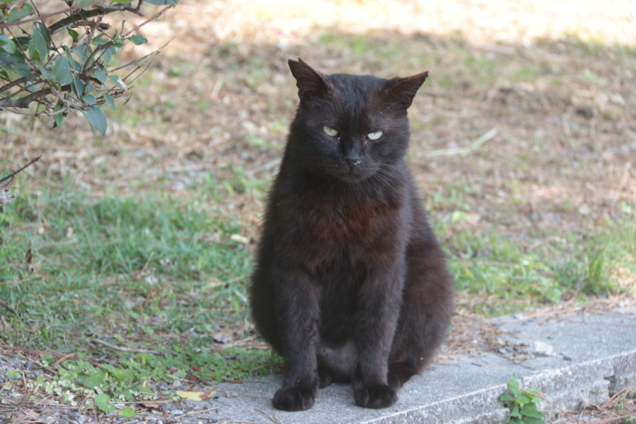 エサやりさんが来たということで、あちこちから三々五々猫たちがやってきます。黒い子もいれば…、