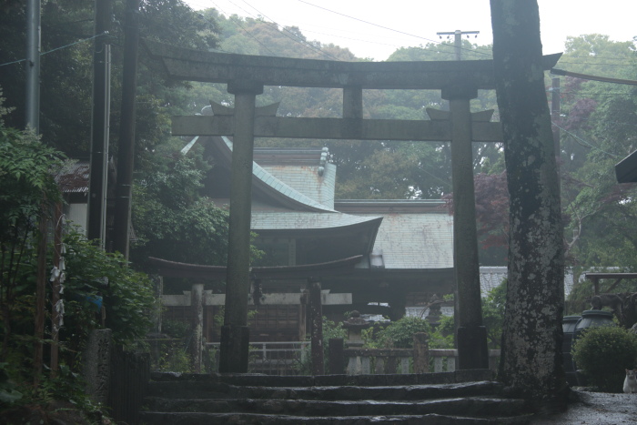 私もシャッターを押したときは薄霧に包まれた神社の全景を撮るつもりだったので気が付かなかったのですが…実は猫が写り込んでた。(^^;