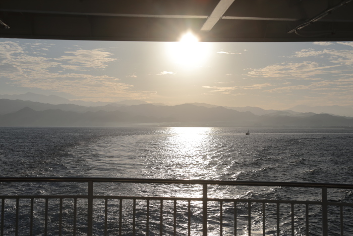 出航してしばらくすると、南の山から太陽が顔を出しました。