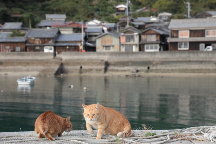 もっとも日本では猫は「漁師の守り神」として大切にされた歴史があるから、その影響かな。元はと言えば、漁に用いる網を食い破ったり船倉の食料を食い漁ったりするるネズミを退治するために飼われ始めたのですが、いつしかそれが日本の漁師に定着したのでしょう。だから漁師の多い島には猫がたくさんいる、ということに。