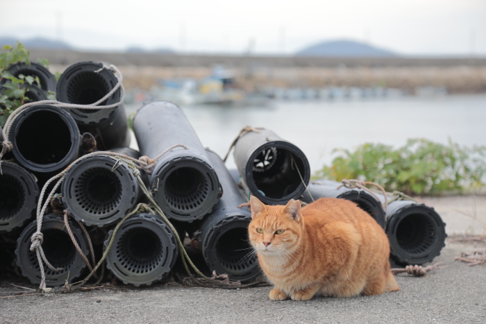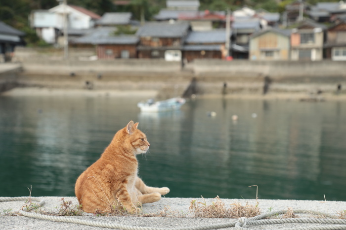 なぜでしょうね、猫と港、猫と海って絵になるのは…。猫ってもともとは水を嫌う動物。水辺にはあまり近づかない動物。