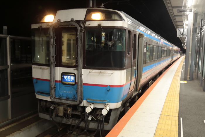 松山始発予讃線海回り宇和島行き。三日前に乗ったのと同じ列車。