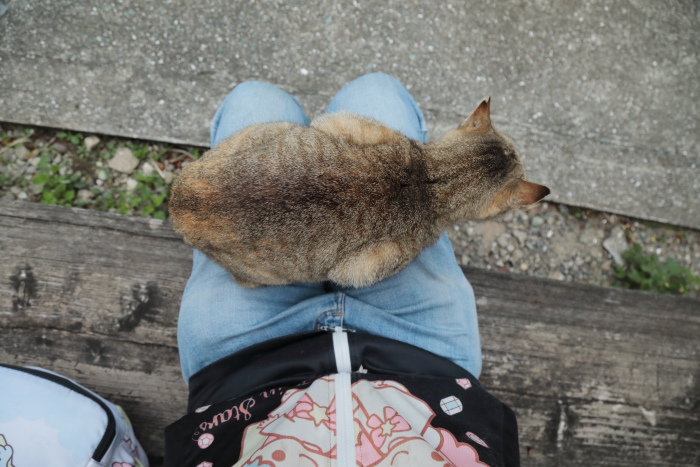 風があったせいか、船着き場の椅子の下に風除けしてた子も。