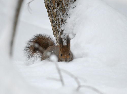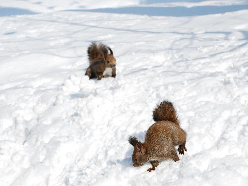 野幌森林公園と円山公園で写してます。エゾリスは冬眠をしないので冬でも会うことができます。