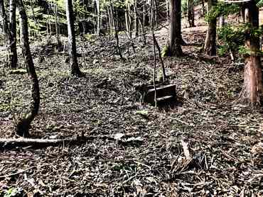 付近には摩鉱に使用した石臼の破片が散らばっていたというが、