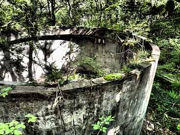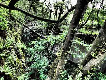 選鉱場の斜面傾斜は25度前後、ここに階段状に施設は配置される。