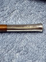 D千円のリーズナブルなお値段のキセル ニッケルの 吸い口と雁首です。値段が値段なのでそれなりの作りです。 あさがおという形です。 |