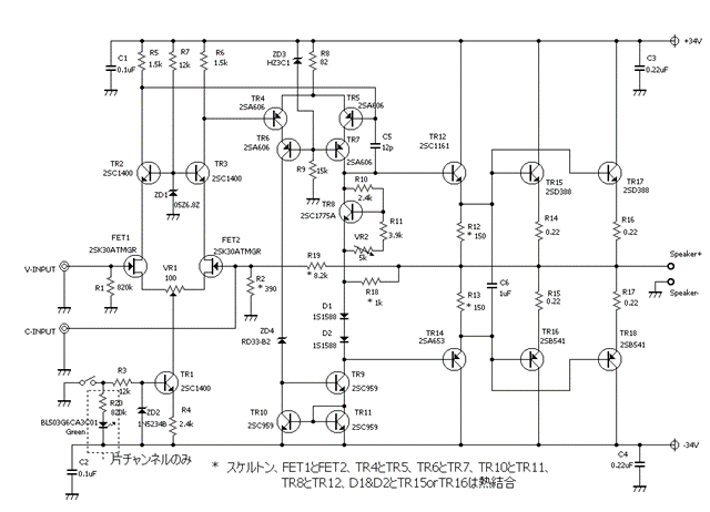 最新の完全対称型パワーアンプは、2段目差動アンプに電流帰還NFBを掛けて利得を殺しその分初段差動アンプと出力段で利得を獲得するという手法が採用されている。我が家ではその方式のパワーアンプはまだ試していない。ので、この機会にその新機軸を試してみたい。